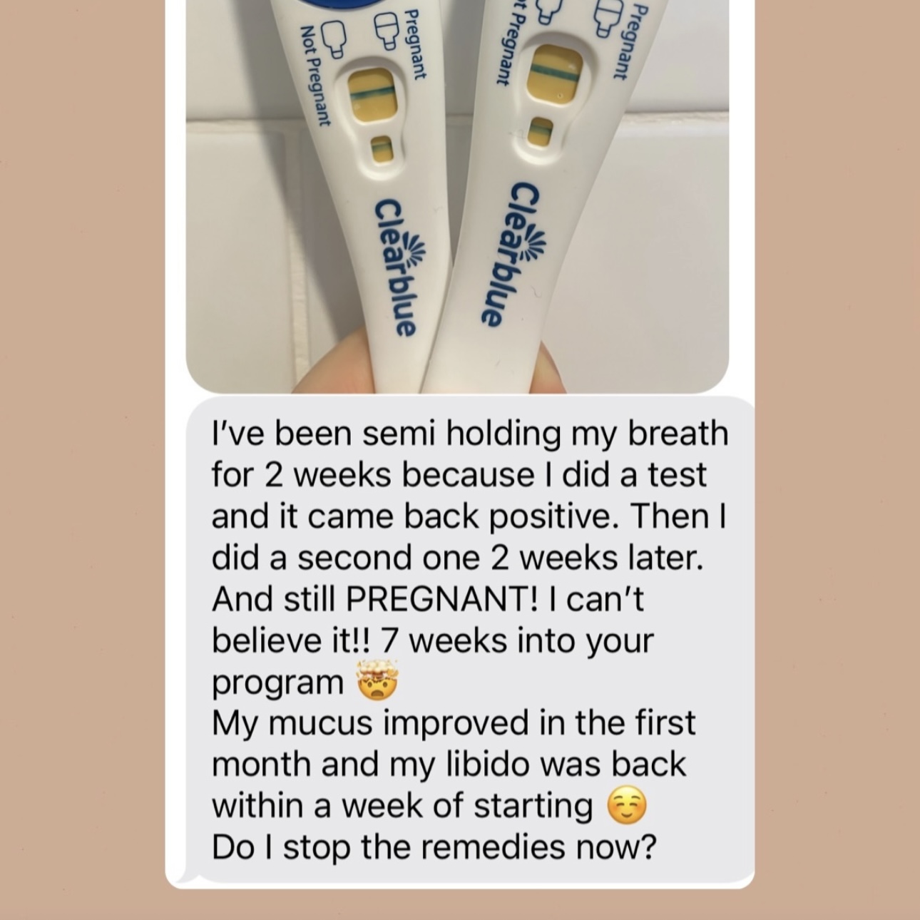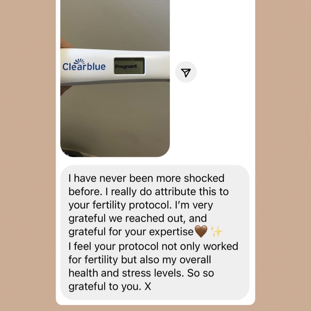 That’s a wonderful outcome. If you conceive during the program, we shift focus to early pregnancy support, ensuring you feel calm, nourished, and supported during those crucial early weeks.